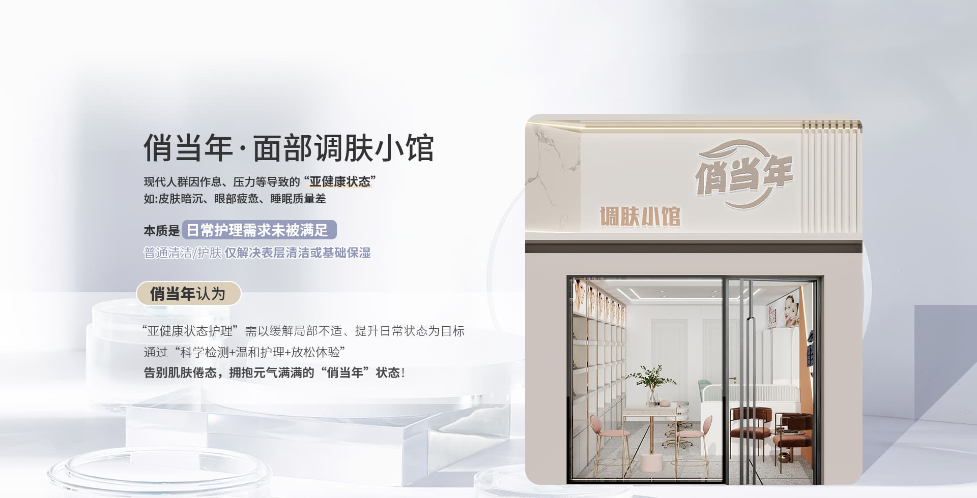 俏当年调肤小馆以“科技护肤,定制美丽”为核心理念,